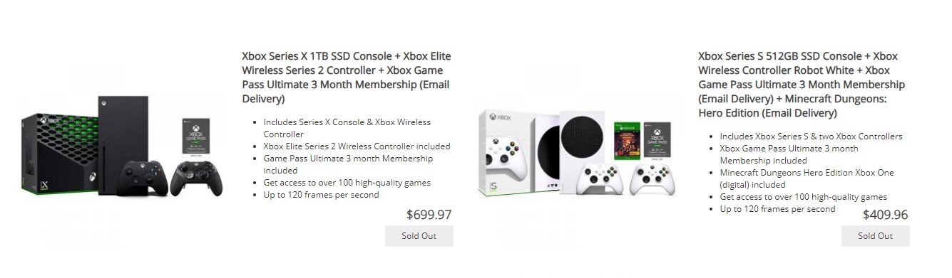 A kiegészítőkkel, Xbox Game Pass Ultimate előfizetéssel és különböző játékokkal elérhető csomagok egyébként jóval drágábban kerültek fel, mint az alapcsomag. Annak ellenére, hogy egyes csomagok több mint 700 dollárba kerültek, mind elfogytak már.
