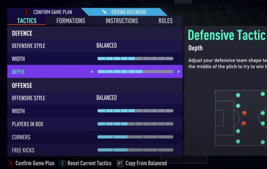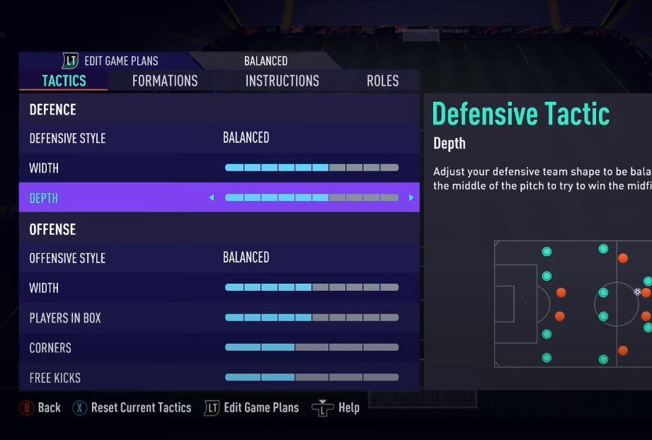 A képen a taktikai instrukciókat láthatjátok, ahol mind a két esetben egyelőre balanced stílust használja. A felállás sava-borsát azonban az instrukciók képzik.