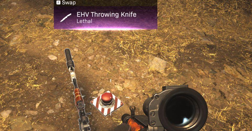 A nagy piros gomb általában két dolgot jelent. Vagy valami, amit semmi esetre sem szabad megnyomni, vagy pedig mindenképp meg kell nyomni. Hogy mikor melyik, az filmtől és történettől függ. A Warzone-ban azonban a gomb nem menti meg a világot és nem indít el semmilyen önmegsemmisítő rendszert. Egyszerűen csak a dobókés álcázza magát így.