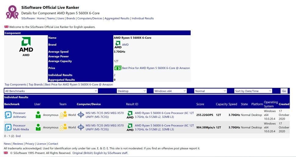 Ezúttal a SiSoftware-ben bukkant fel a Ryzen 5 5600X, ahol a processzorok aritmetikai, illetve multimédiás teljesítményét vették górcső alá. Előbbin 255.22 GOPS pontot, utóbbin pedig 904.38 Mpix/s-os eredményt kaptak, ami szép előrelépés a Ryzen 5 3600X 214.89 GOPS, illetve 625.51 Mpix/s-os eredményéhez képest. Egész pontosan 18,8% illetve 44,6%-os előrelépést jelent ez a korábbi generációhoz képest.