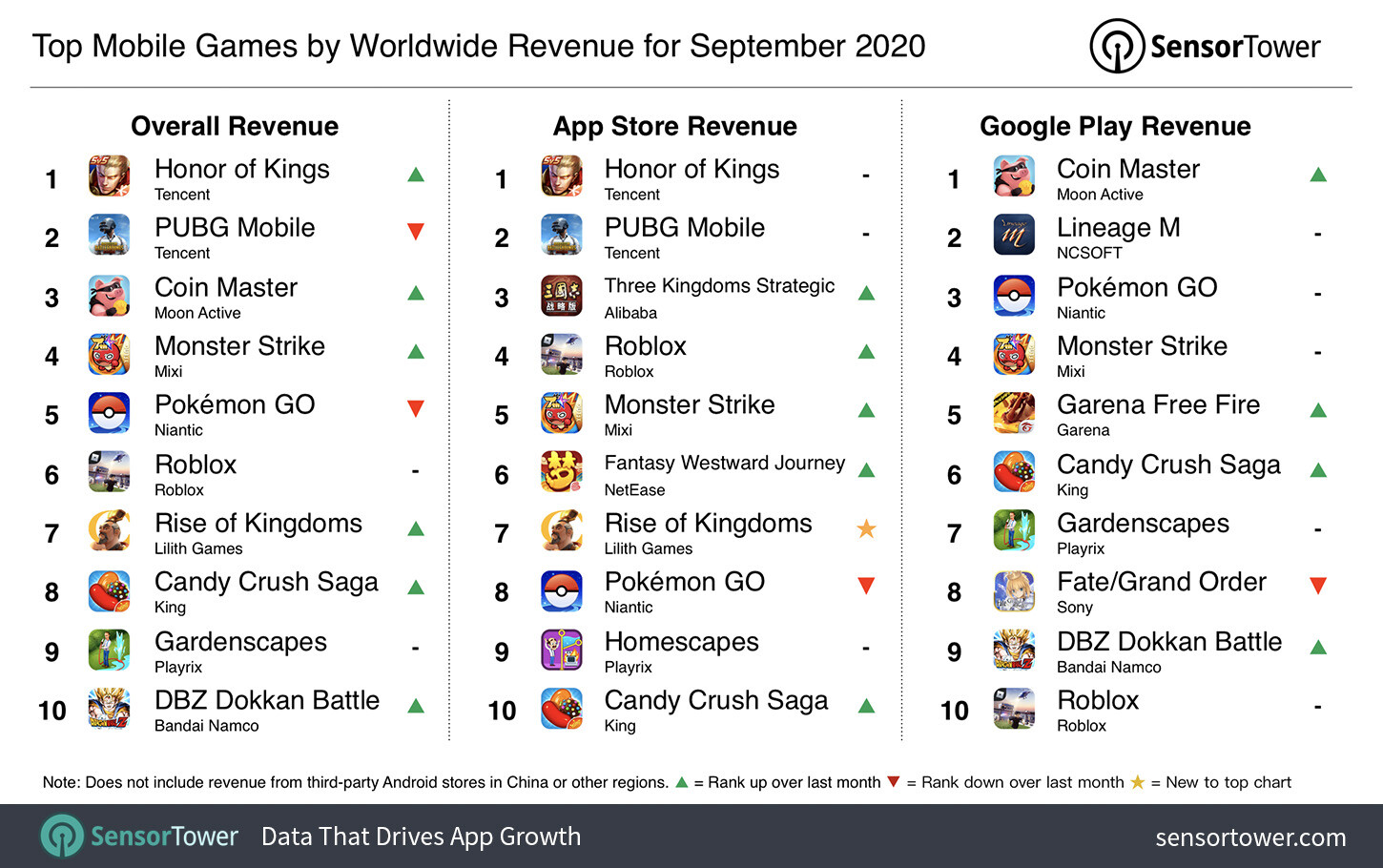 A legeredményesebb mobiljáték egyébként a múlt hónapban a Tencent MOBA-ja, a Honor of Kings volt. Bár csak a világ néhány régiójában érhető el, például Kínában és Tajvanon, mégis körülbelül 240 millió dollárt költöttek rá a felhasználók szeptemberben.