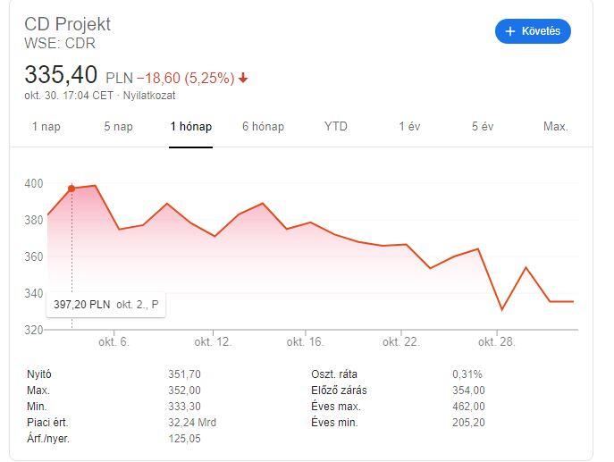 Az utóbbi időben nem hallani túl sok biztatót a CD Projekt RED felől. Miután ismét elhalasztották a Cyberpunk 2077 megjelenését, rengeteg gyűlöletet kapott a stúdió. A magyarázkodással egyidőben viszont elindultak a CD Projekt részvények a lejtőn. Amíg korábban 397 zolty-t kellett egyetlen CDP részvényért fizetni, addig mostanra már csak 335 zloty-ért adják darabját.
