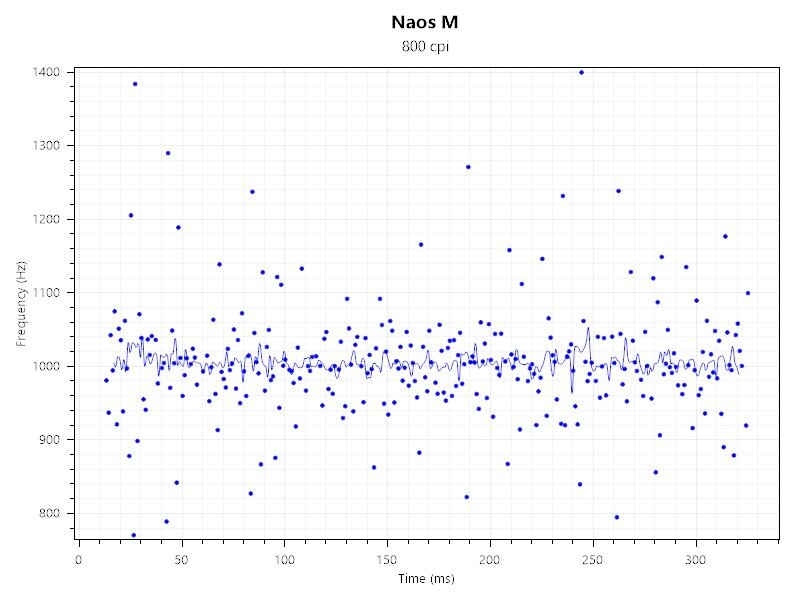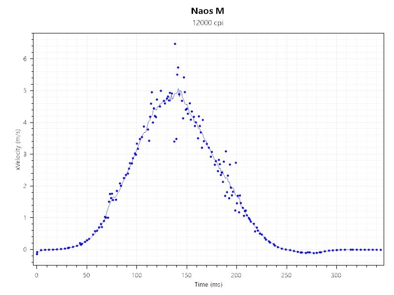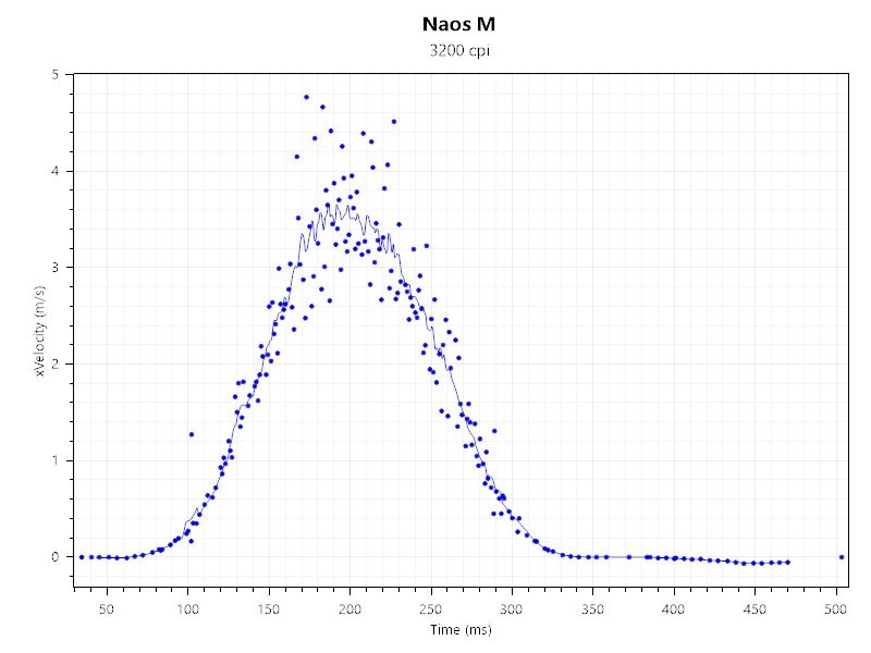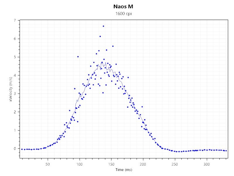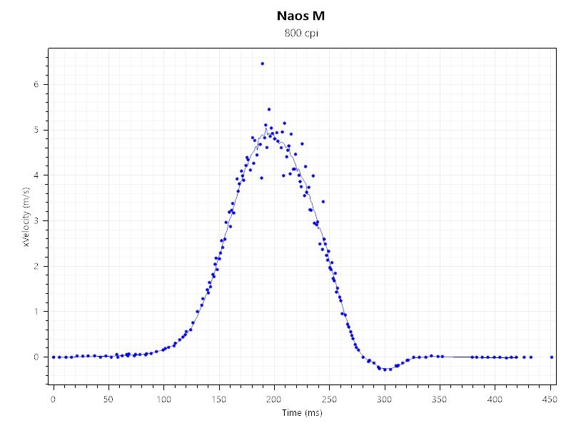 Első körben a gyártó által megadott 800 DPI-s értéken néztük meg, mire is képes a Naos-M. Egy L-es méretű SteelSeries Howl padon 5 m/s-osat sikerült rántani, amit az egér szenzorja simán lekövetett. A legtöbben általában 1-2 m/s-os rántásokat szoktak végezni, így nemcsak hogy az átlagos használatra, de akár esportolóknak is remek választás lehet.