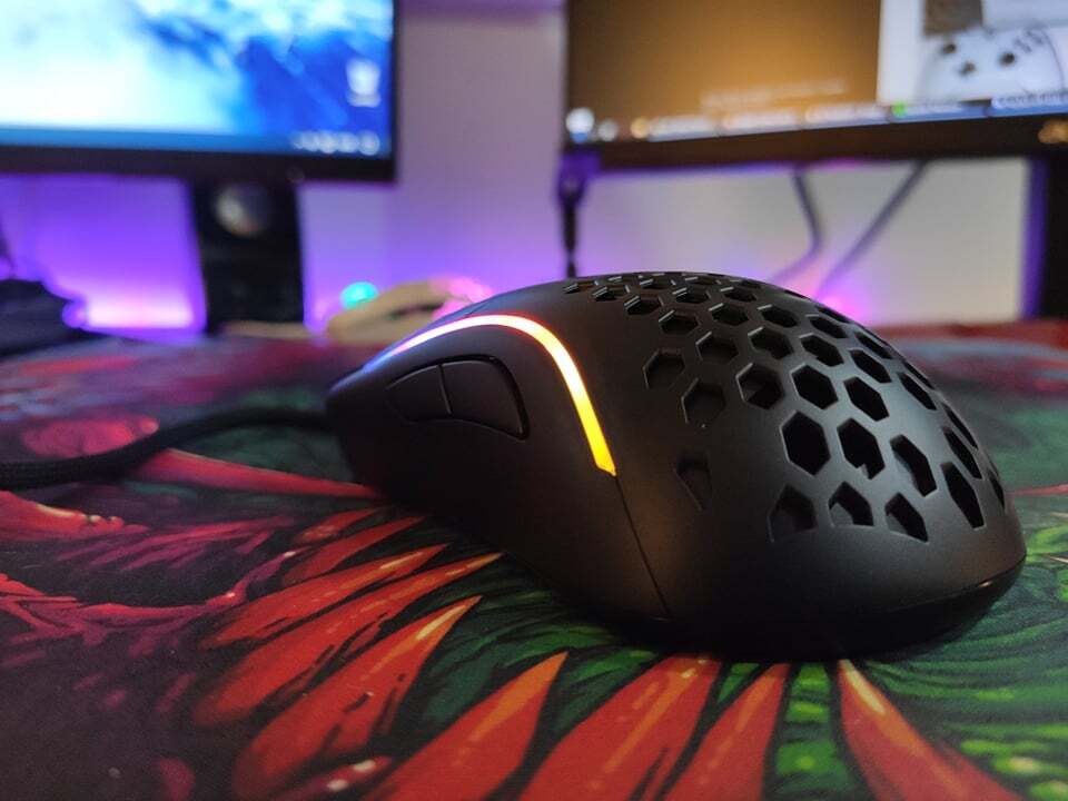 Na ez az elsődleges, amivel a Naos-M meg tudja fogni az embert. A képek nem adják vissza igazán, de ennek az egérnek egyszerűen elképesztő formája van, ez pedig nem az extravaganciára utal, hanem a kényelemre. A Naos-M ugyanis elképesztő kényelmes, mondom ezt úgy, hogy a Cooler Master MM711 formáját hittem idáig a legjobbnak, de ez most alaposan megingatott. Kicsit bumfordibb fara van, ugyanakkor mégis egy kis-közepes egérről beszélünk, ami 119,5 x 64 x 38,4 mm-es méretekkel rendelkezik és ráadásul mindössze 59 grammot nyom.