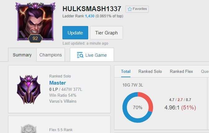 Ugyan lövészként vált híressé, viszont már bebizonyította követőinek, hogy a jungler pozícióban is képes a legjobbak között teljesíteni. Legutóbbi kihívásán pedig azt tűzte ki magának célul, hogy egy Unranked felhasználót tol fel Master rankig, még a 10. szezonban. A helyzet viszont az, hogy már csak egy napja maradt, s még mindig csak Diamondban „lézengett”.