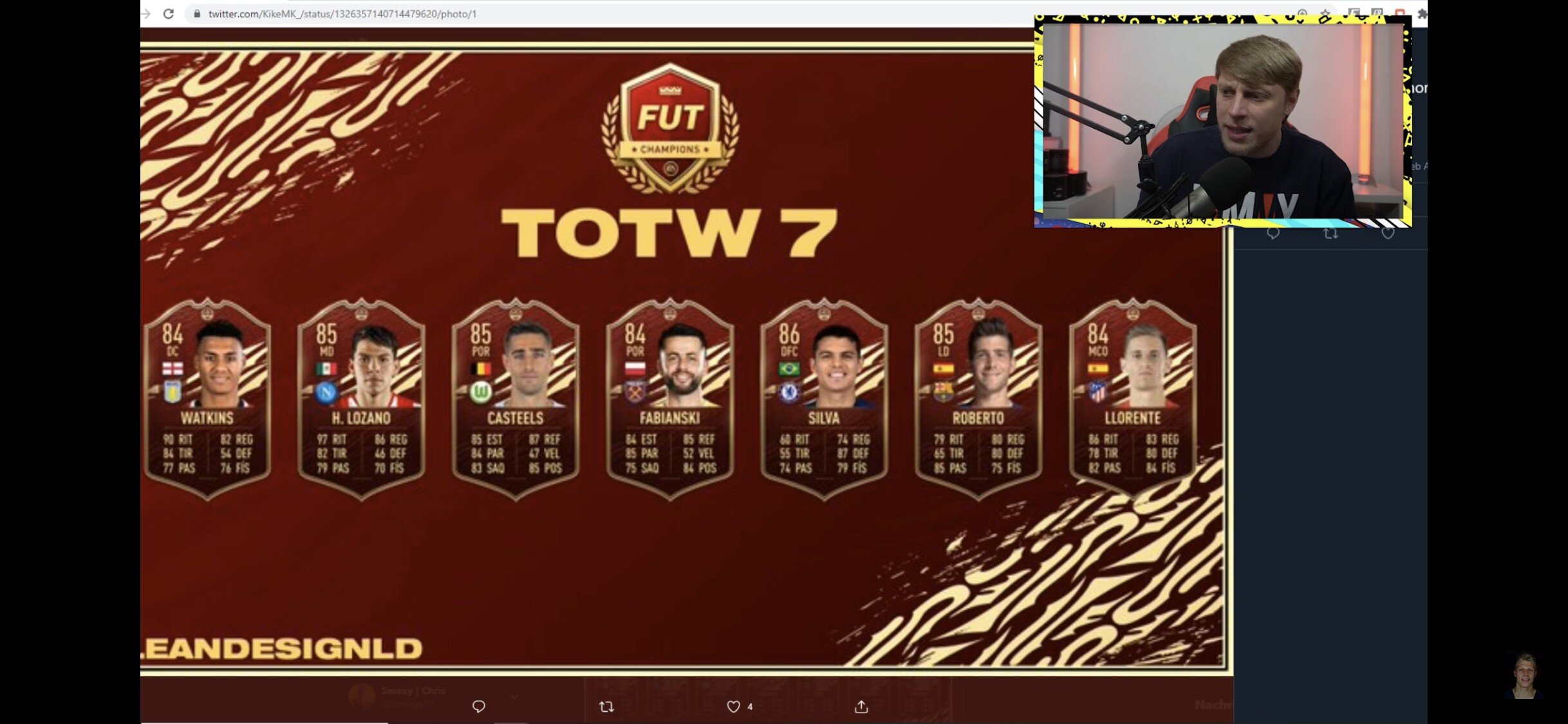 Ezen a héten se sikerült hét lakat alatt tartani a játékos névsort az EA-nél, ugyanis a lapok több mint fele kikerülhetett még megjelenés előtt. Az előbb megjelent lapok között olyan neveket találunk, mint az Arsenal ellen duplázó Watkins, a Chelsea-nél OTW lapot is kapó Thiago Silva, és a hétvégén ismét bombaformában játszó Lozano. Llorente is hétről hétre jobb formában szerepel, és bár múlt héten Joao Félix jutott új kártyához, úgy tűnik, hogy ezúttal végre ő kapja meg. Az RB lapjának ára rohamos ütemben el is kezdett csökkenni.