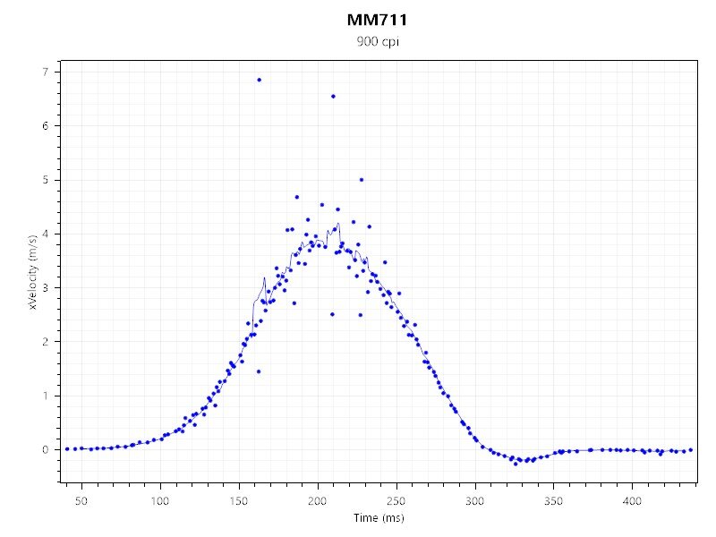 Ha pedig már úgyis kéznél volt a Cooler Master MM711, néztem egy mérést is. A rántás során szigorúan a billentyűzet mellől indultam, így jött össze a 4 m/s-os gyorsulás. Játék közben egyszer sem volt probléma a sebességből adódóan.