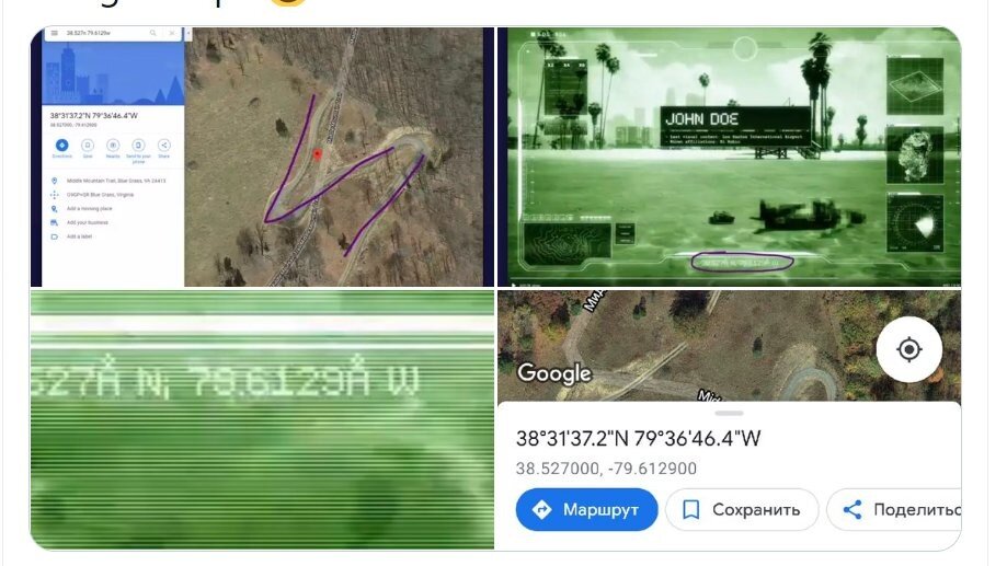 Az előzetesben ugyanakkor váratlanul megjelennek zöld színű biztonsági kamerás felvételek is, melyek egyikén egy koordináta található: „38.527A N; 79,6129A W.”