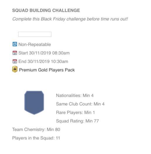 Nem csak vásárlással, hanem SBC-ken keresztül is csomagokhoz juthatunk. Black Friday miatt rövid intervallumú kirakósokat kapunk, melyekre nagyjából 2 óránk lesz. A legtöbb csomag valószínűleg Untrade lesz, de jó lehetőség a klubunk kiürítésére. Az ügyesek könnyen profitálhatnak, majd ezeken a kirakósokon.
