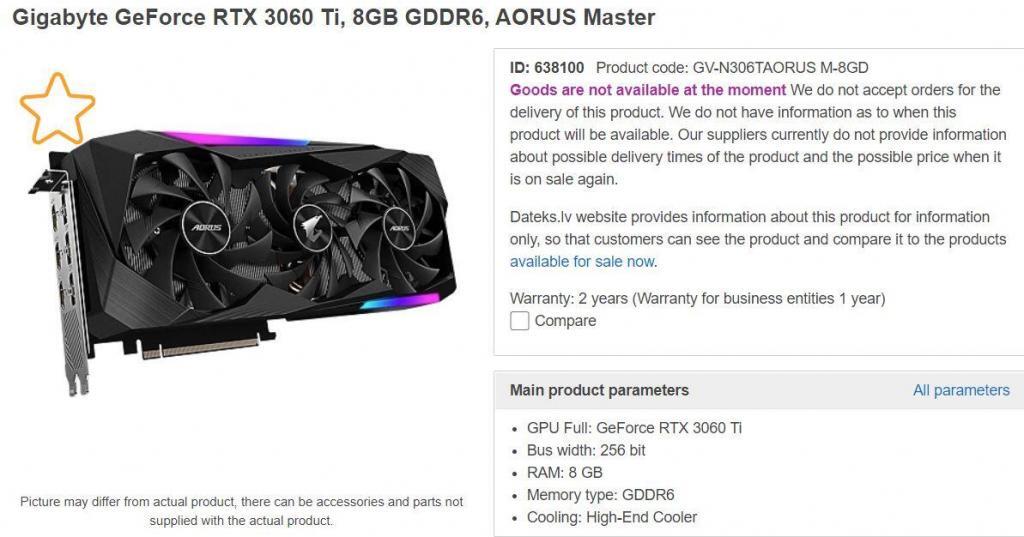 „Az újdonságot meg kell fizetni, nemhogy a be nem jelentett újdonságot” – gondolhatták az európai webshopok, ahová kikerültek a hivatalosan még be nem jelentett RTX-ek. Az Nvidia egyelőre húzza-halasztja még az RTX 3060 Ti-ok debütálását, vélhetően a készlethiánynak köszönhetően, ugyanakkor a lettországi Dateks oldalán már feltűnt több példány is. Egész pontosan a következő darabok jelentek meg, a következő árcédulákkal: