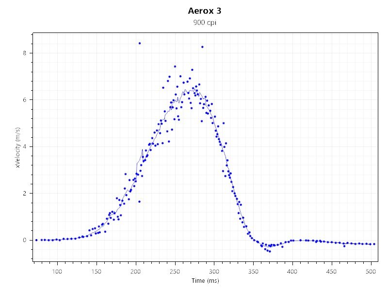 Az általam kedvelt 900 DPI-n egy 4,5 m/s-os gyorsulást sikerült összehozni, mindezt nagyjából 50 cm-en sikerült produkálni. Noha a grafikonokon nem látszik semmilyen anomália, kicsit furcsáltam, hogy mindenhol 4,5 m/s volt a csúcs, ezért elkezdtem gyanakodni, hogy sikerült-e elérni a szenzorban lévő teljes potenciált, ami egyébként bőven rendben lenne, de egy második csekkolás kedvéért a pad teljes szélességén is végeztem egy mérést, ahol is 6 m/s feletti sebességet sikerült mérni, ebből következik, hogy a szenzor bizony ott van a piacon kapható legjobbak között.