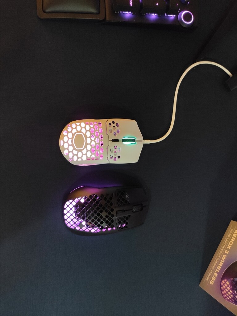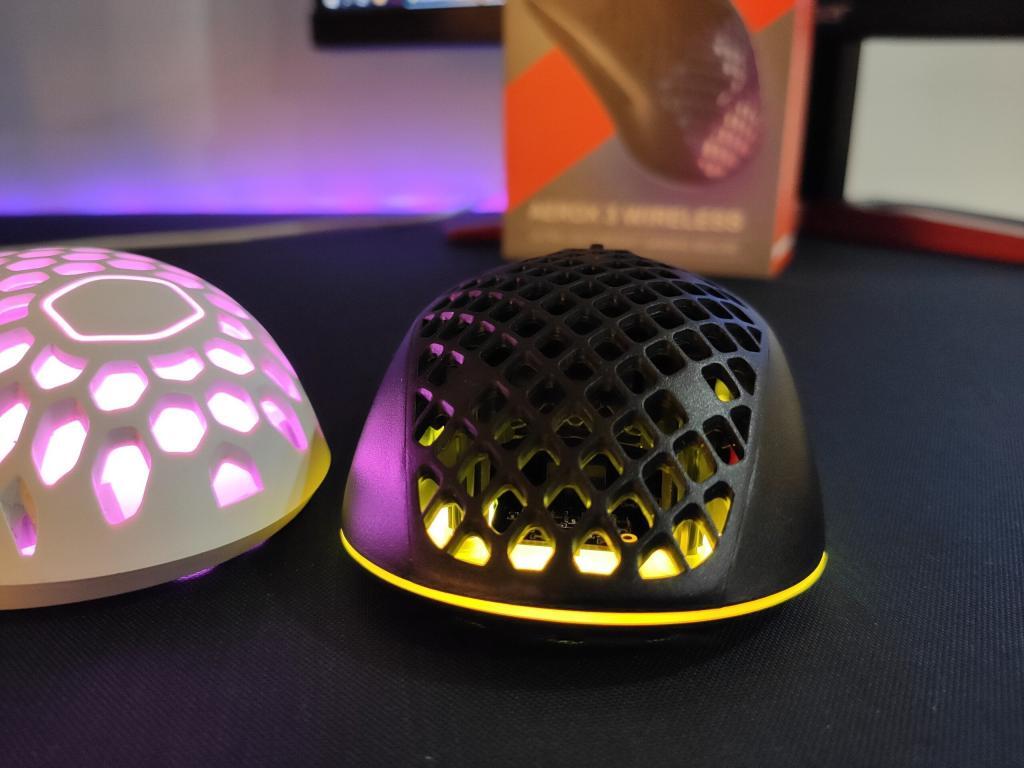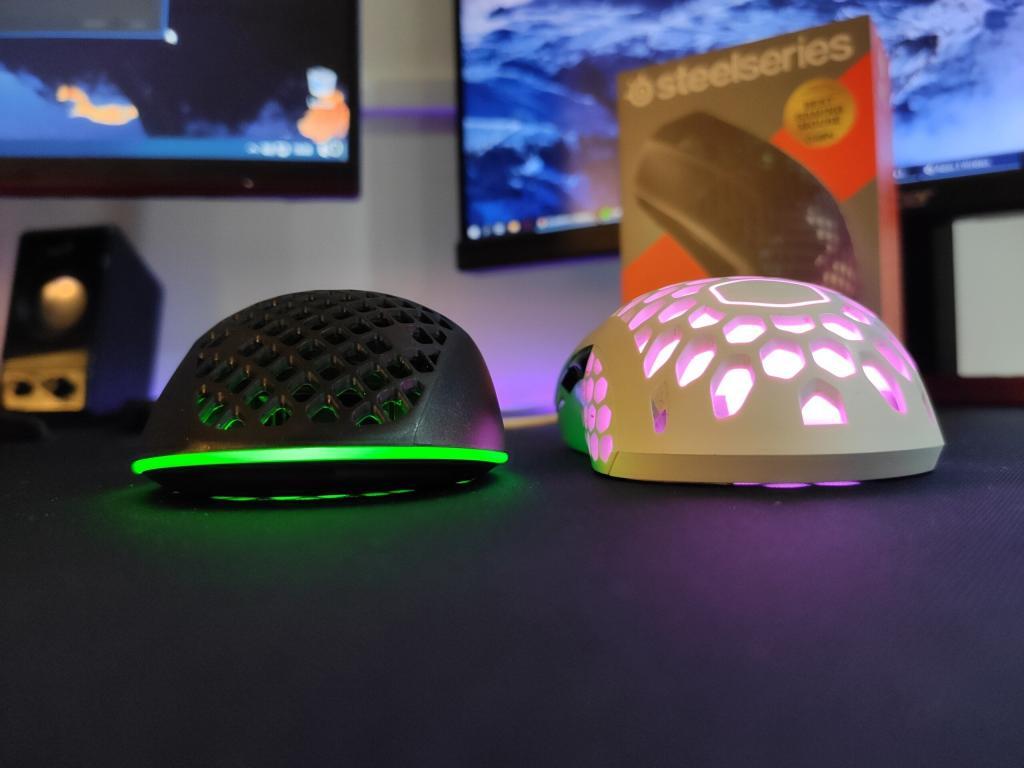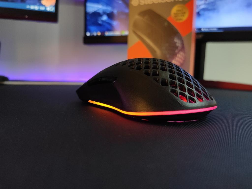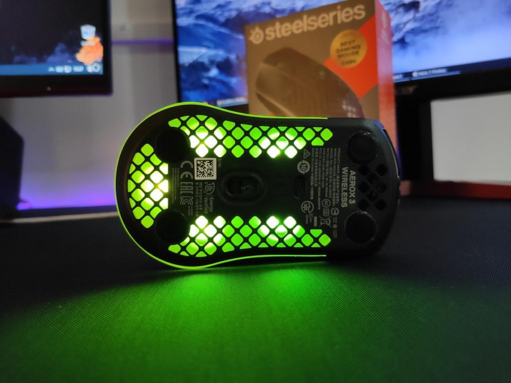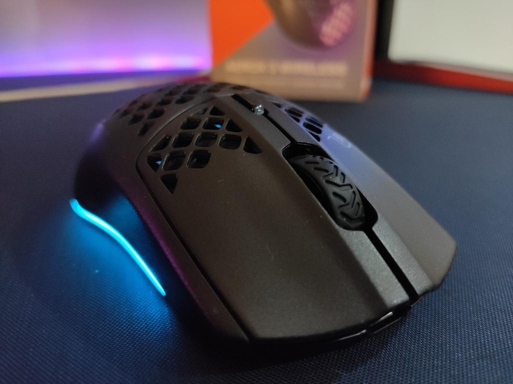 A Cooler Master MM711 után nem volt túl nagy változás, legalábbis ami az egér fogását illeti. Érdekes egyébként, hogy a renderképeken az Aerox 3 sokkal fényesebbnek tűnt, a valóságban viszont inkább csak az egér alja volt jobban kivilágítva.
