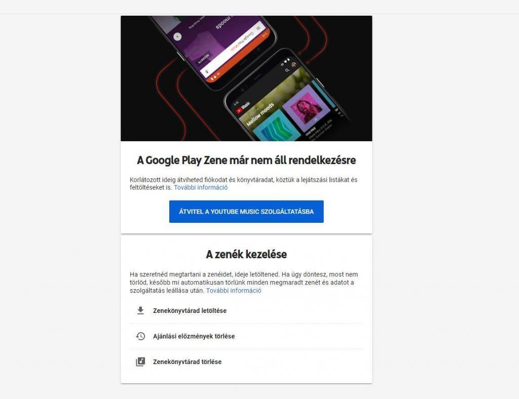 Októberben érkezett a hír, mi szerint a nem túl népszerű Google Music szolgáltatást megszünteti a Google. Az előkészületek után megkezdték a szolgáltatás teljes lekapcsolását, aminek immáron a végéhez is értek. A mai naptól ugyanis az alábbi felirat köszönt minket a play.google.com oldalán: