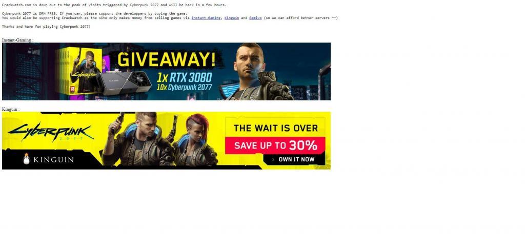 Meglepő módon viszont az egyik legnagyobb crackfigyelő oldal teljesen lelőtte az oldalát, a friss megjelenések helyett pedig gyakorlatilag egy Cyberpunk 2077 reklámot láthattak az arra tévedők. Itt a játék megvásárlását promótálták, ami igencsak szokatlan egy cracker csapattól. Ennek ellenére a nagyobb torrentoldalakon továbbra sem tűnt el a CD Projekt Red üdvöskéje, de remélhetőleg e nélkül is nagy sikereket fognak elérni az elkövetkezendőkben. e
