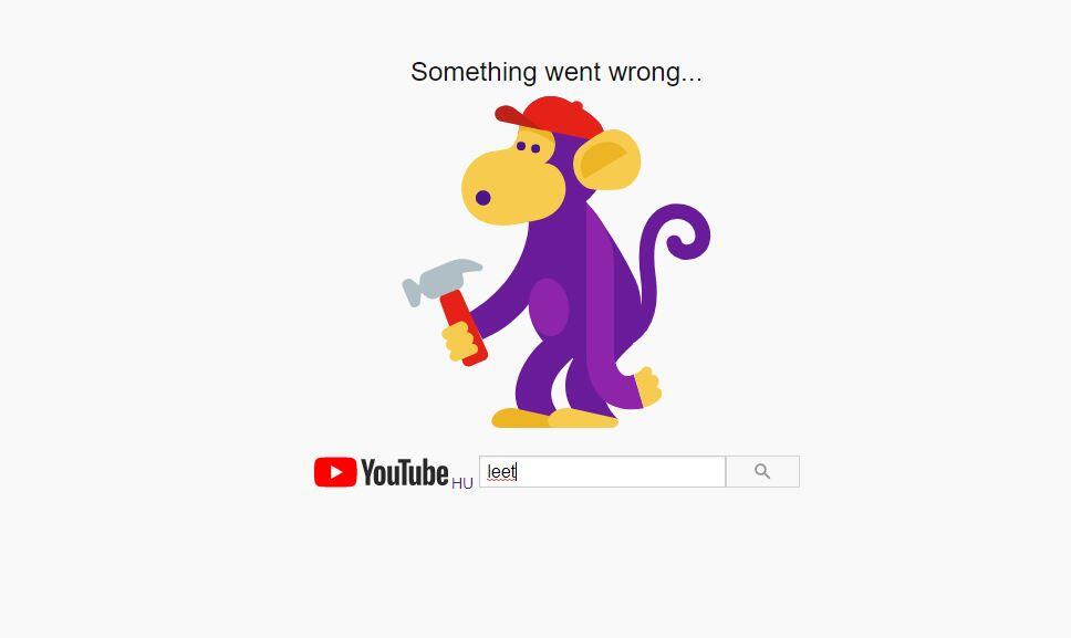 Amíg a Gmailnél átmeneti (500)-as hibára fut a böngészőnk, addig a YouTube a „Something went wrong” feliratú 404-es hibaoldalra irányít, ahol ugyan elérhető egy keresőmező, de sajnos egyelőre nem funkcionál.
