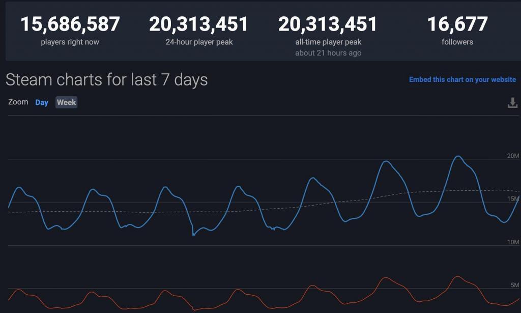 Az új rekord pedig 24.7 millió felhasználó egy időben! Ehhez a számhoz sok tényező járult hozzá, ilyenek például az új megjelenések, az ünnepek közeledte és sajnos a hatalmas világjárvány miatti lezárásokkal járó sok szabadidő.