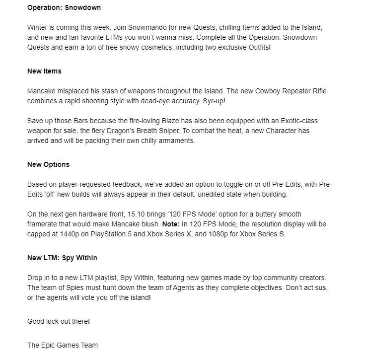 A reggeli órákban megérkezett a Fortnite Battle Royale legújabb frissítése. Egy halom új karácsonyi skin, de még egy új fegyver is felbukkant a kliensben. Na meg jöttek új játékmódok is.