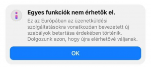 Az értesítés arról szól, hogy a Messenger bizonyos funkciói nem elérhetők, hiszen a rendelet értelmében a Facebooknak ki kellett kapcsolnia azokat, legalábbis egy időre. Ezután gyorsan ki is derült, hogy a módosítás