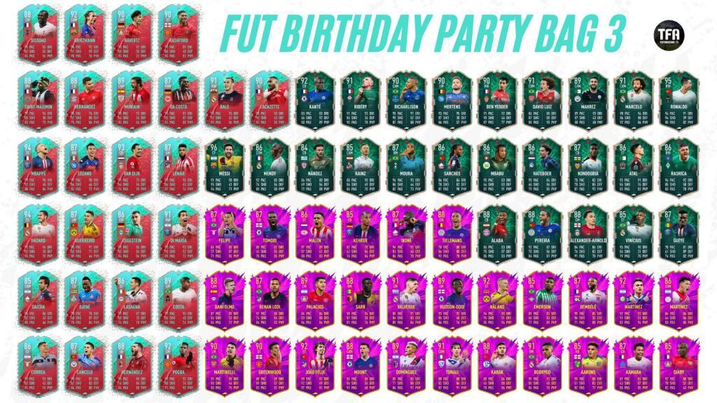 Tavaly a FUT Birthday alatt mutatkozott be a Party Bag SBC, ahol különböző promóciók közül nyithattunk lapokat. Ismét lehetőségünk lesz tesztelni a szerencsénk, ugyanis visszatér a kirakós. Nagyjából egy 85-ös, vagy 86-os csapatot kell majd összetennünk érte, és a csomagból az eddigi promóciók közül bonthatunk majd valamit. A csomagban FUT Freeze, TOTGS, RTTF, Rulebreakers, OTW és Record Breaker lapok is nyithatóak lesznek, így viszonylag széles palettából válogathatunk.