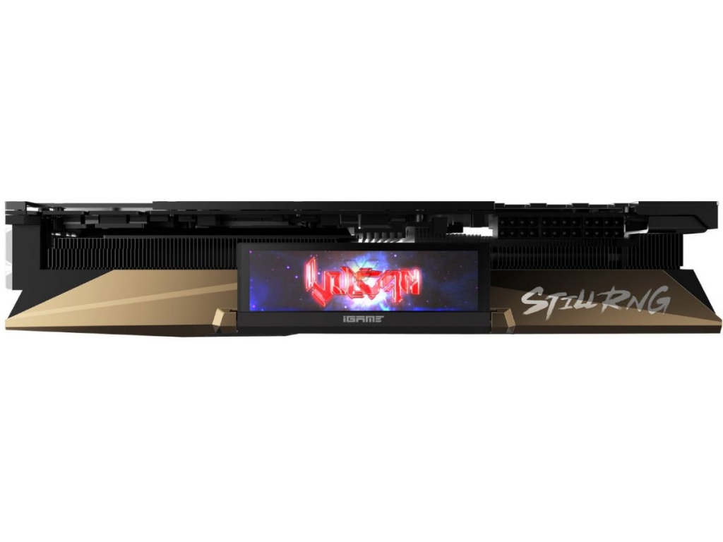 Az egyedi kártya a Colorful iGame Vulcan szériáján alapszik, ami önmagában is egy borzasztóan túlgondolt egyedi hűtőrendszert tartalmaz. Ami miatt igazán egyedinek mondhatjuk ezt a típust, az nem más, mint a kijelzője, amit teljesen testre szabhatunk. Ezenkívül pedig az RNG motívumai is ott figyelnek a kártya minden egyes szegletében.