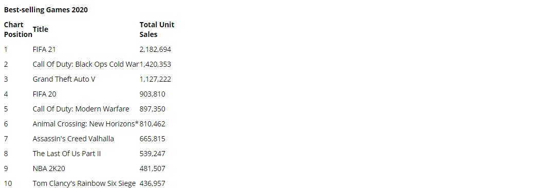 Egészen pontosan 1,127,222 példányt adtak el, ami azt jelenti, hogy az olyan új címek, mint az Animal Crossing: New Horizons (810.5 k), az Assassin’s Creed Valhalla (665.8 k) és a The Last of Us II. (539.2 k) alulmaradtak.