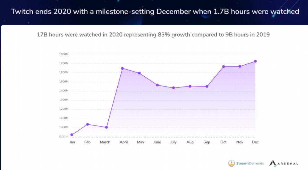 A tavalyi évben, a statisztikák alapján a Twitchet 17 milliárd, a Facebook Gaminget pedig 3,59 milliárd órán át nézték a nézők.