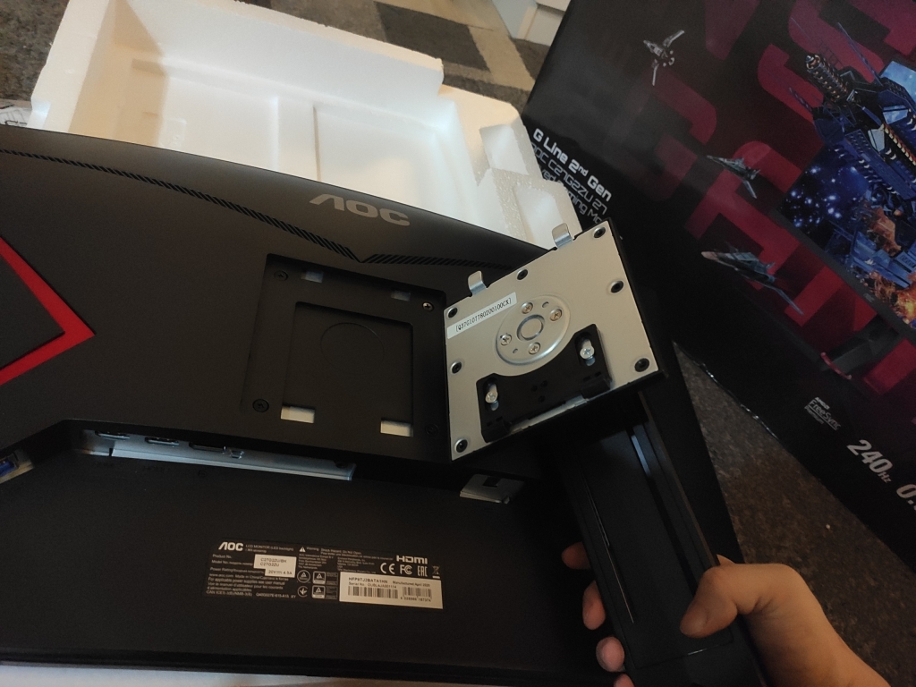 Maga az összeszerelése csupán pár percet vesz igénybe. Gyakorlatilag csak be kell pattintani a fém tartóelemet a hátlapra, ezt követően felcsavarozzuk a talpat és már készen is vagyunk. Az összeszerelés során már láthatjuk, hogy az alacsonyabb árcédula ellenére sem spóroltak az anyaggal. Ennek köszönhetően a monitor borzasztó stabil.