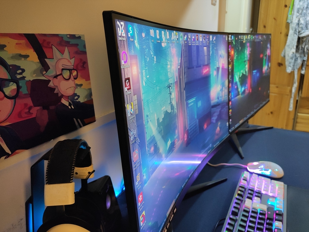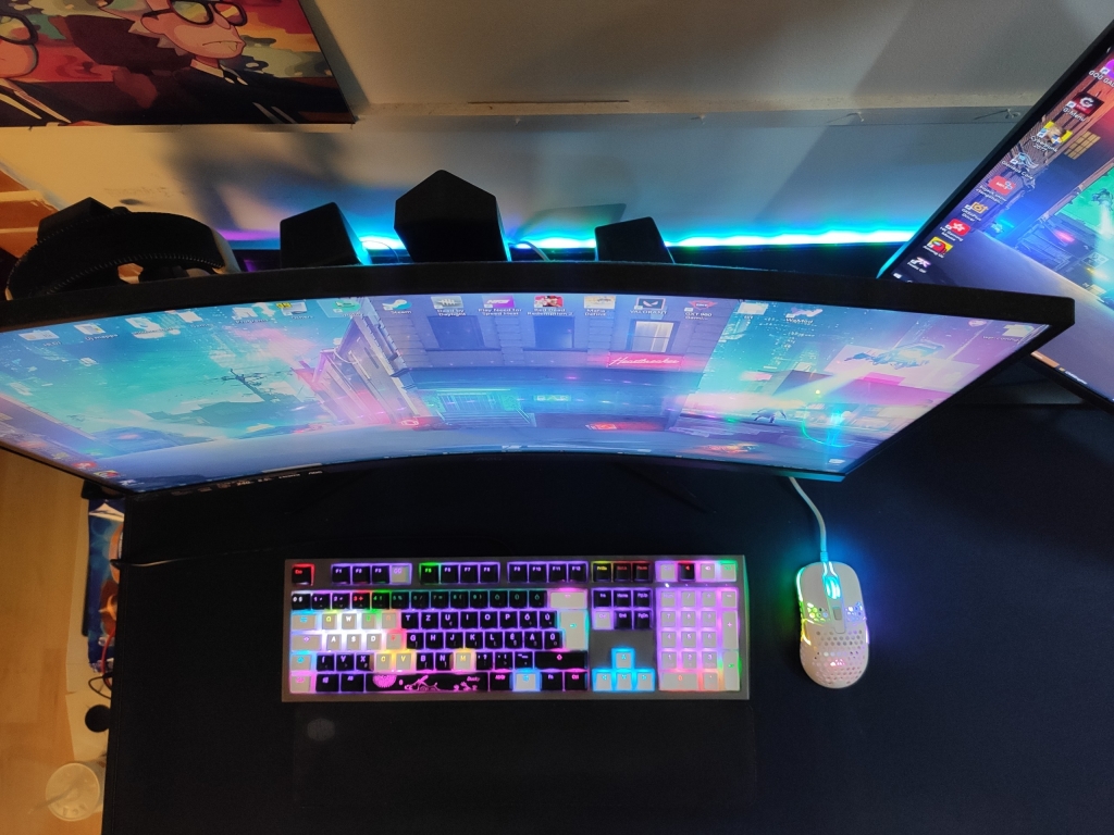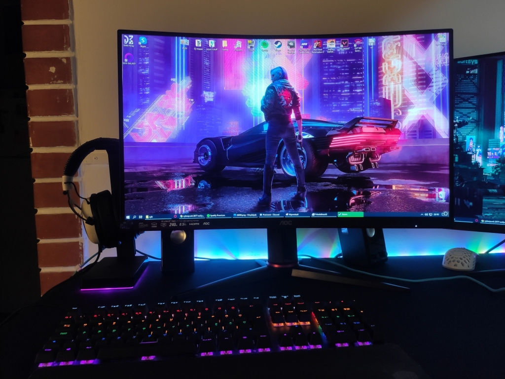 Vegyük sorba! 110 ezer forintért cserébe kapunk egy 27″-os hajlított VA panelt, ami 240 Hz-en üzemel. 0,5 ms-os válaszidőre képes a panel (papíron), ezt pedig FullHD felbontás(1920×1080) mellett élvezhetjük. A VA panel nagyjából félúton van a TN és az IPS között. Válaszidőben már sikerült a TN szintjére érni, viszont az IPS panelek képe teltebb, de azért egy TN-hez képest nagy előrelépés.
