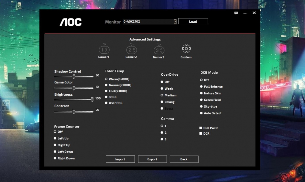 Ha pedig az okos megoldásokról beszélünk, akkor ejtenék pár szót az AOC G-Menü névre hallgató szoftveréről, ami egyszerűen óriási. Nem kell ránéznünk se a beépített monitormenüre, a szoftver telepítése után pár kattintás segítségével állíthatunk szinte minden fontos attribútumot.