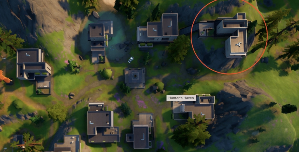 A fenti képen tökéletes látható melyik házikót birtokolja Predator. Ezt a küldetést is pár másodperc alatt teljesíthetjük. A jutalmunk egy built-in emote lesz, mellyel a maszkot vehetjük le/fel .