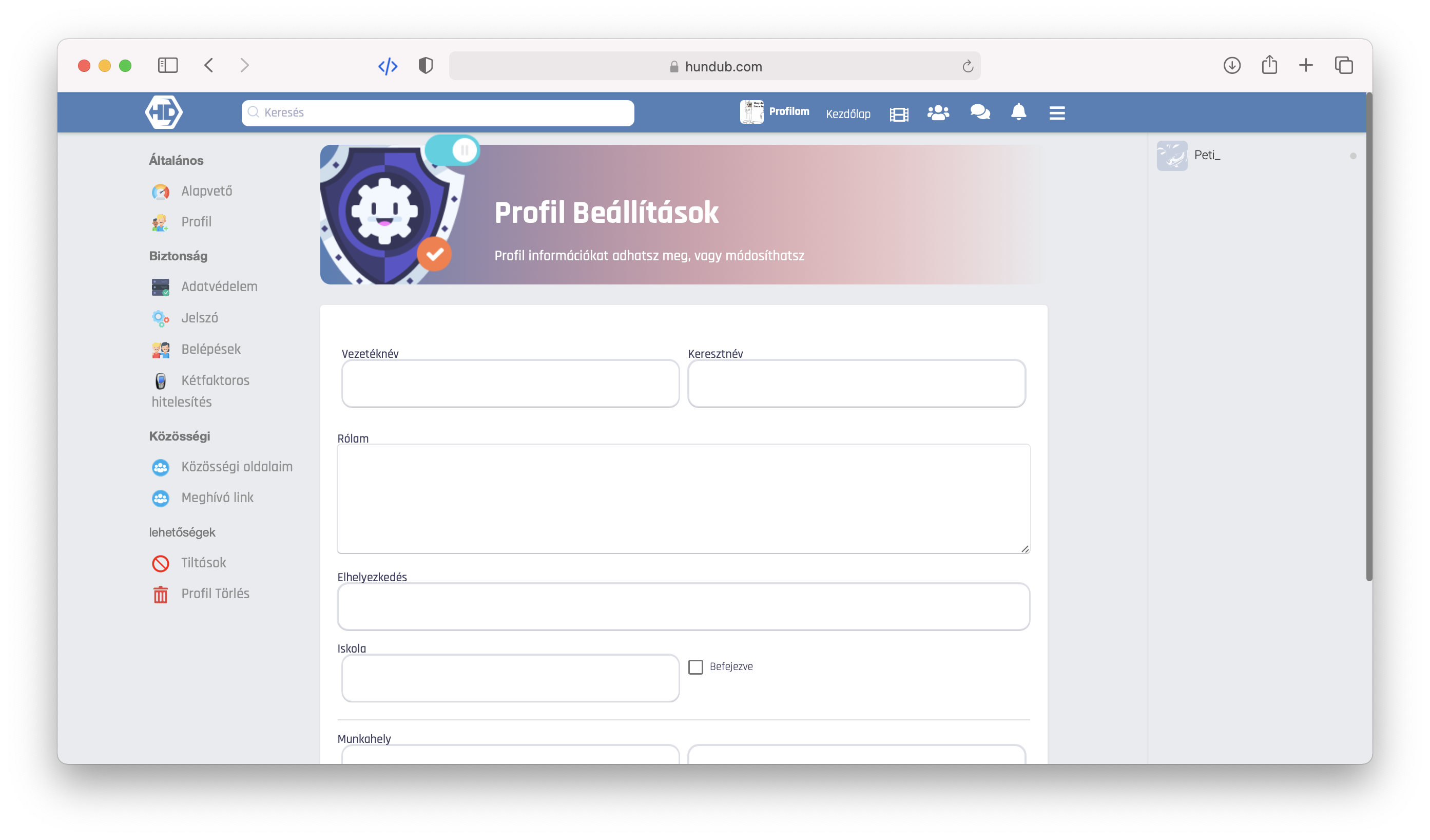 Az oldal többi funkciója sem okoz meglepetést, itt is találunk csoportokat, oldalakat vagy eseményeket. Sőt, a “Bevásárlóközpont” aloldal alatt a Marketplace-re erőteljesen hajazó adok-veszek felületet is elérünk. A beállítások alatt tovább finomíthatjuk profilunkat az alapvető és extra adataink megadásával. Az oldal nem kötelez minket a vezetéknév és keresztnév használatára, ha valaki csak szimpla felhasználónévvel szeretné használni az oldalt arra is lehetősége van.
