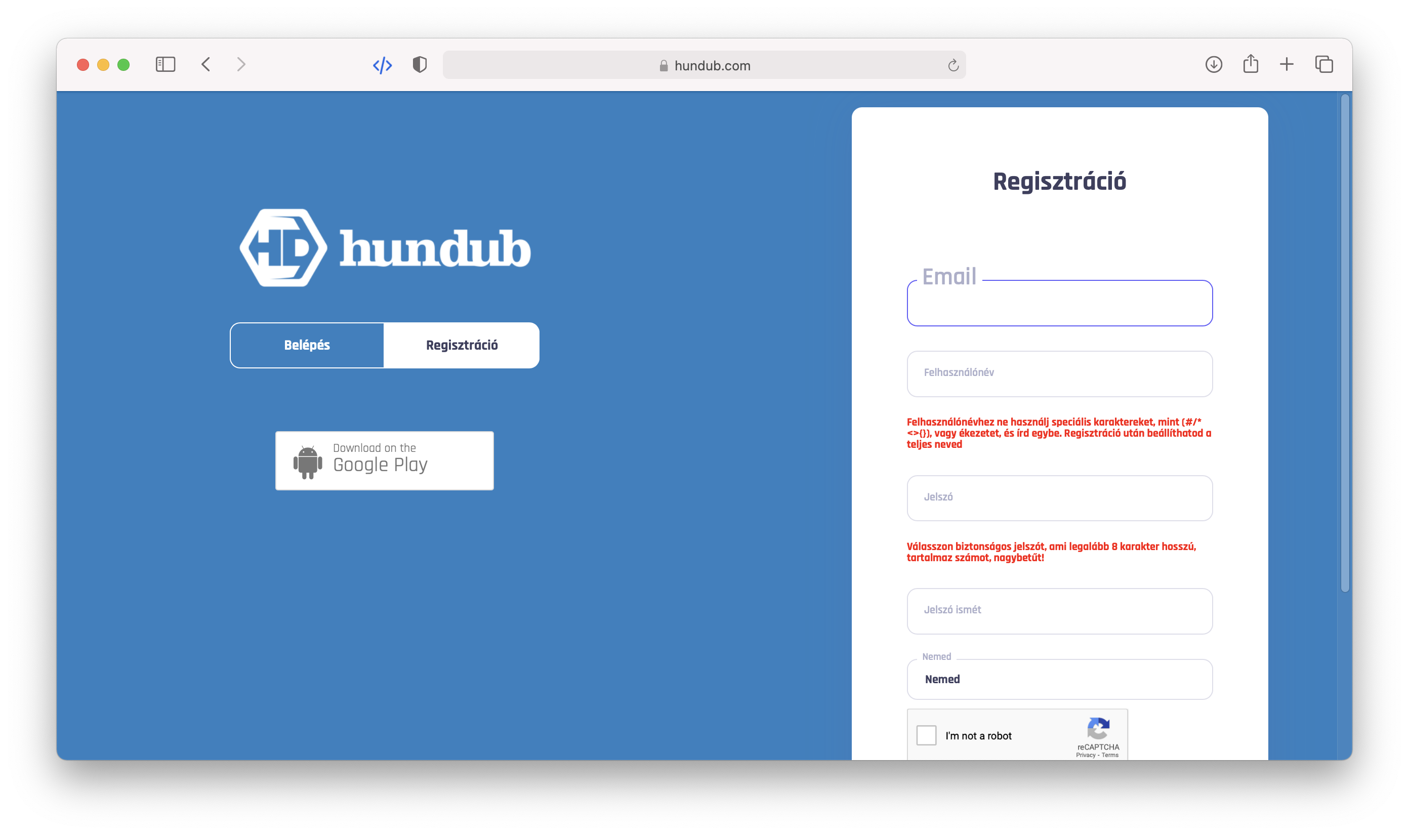 A hundub főoldalán azért erőteljesen látszódik, hogy volt honnan meríteni. Ha akarnák sem tudnánk eltitkolni, hogy a Facebook aktuális designja előtti verzió volt az ihletadó. Az biztos, hogy aki a nagy óriástól érkezik ide, az nem fog tudni eltévedni, annyira azonos helyen van minden.
