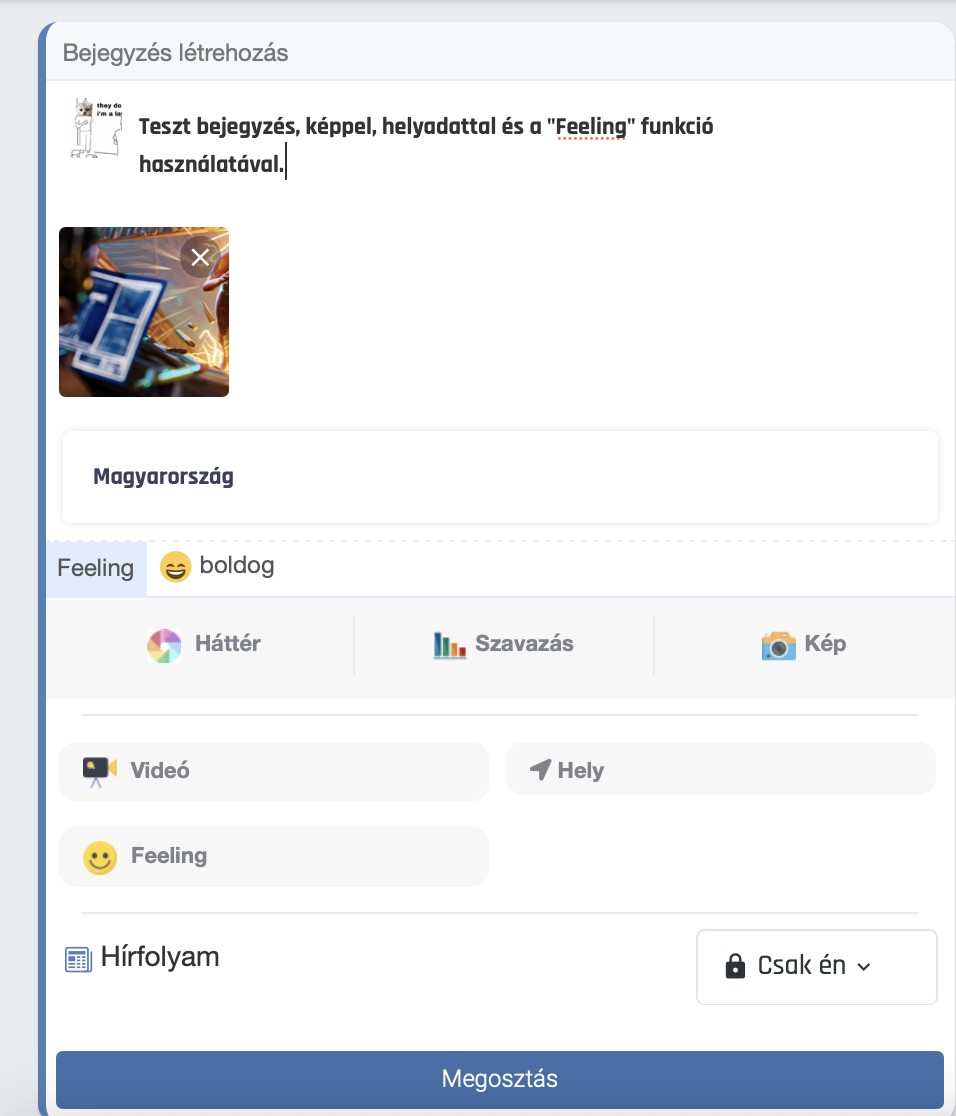 Ezen kívül a bejegyzések közzétételével nem volt semmilyen probléma. A bejegyzések láthatóságát is személyre szabhattuk, hasonlóan a többi ilyen típusú oldalhoz.