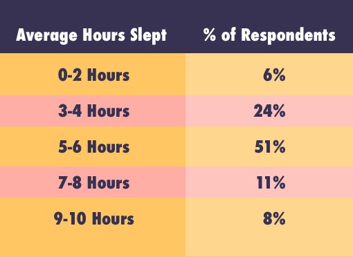 A válaszadók több mint fele mondta azt, hogy napi 5-6 órát alszik, ami az orvosok szerint nem éppen elegendő. A megkérdezettek 24 százaléka mondta, hogy átlagosan 3-4 órát alszik, ami még rosszabb.