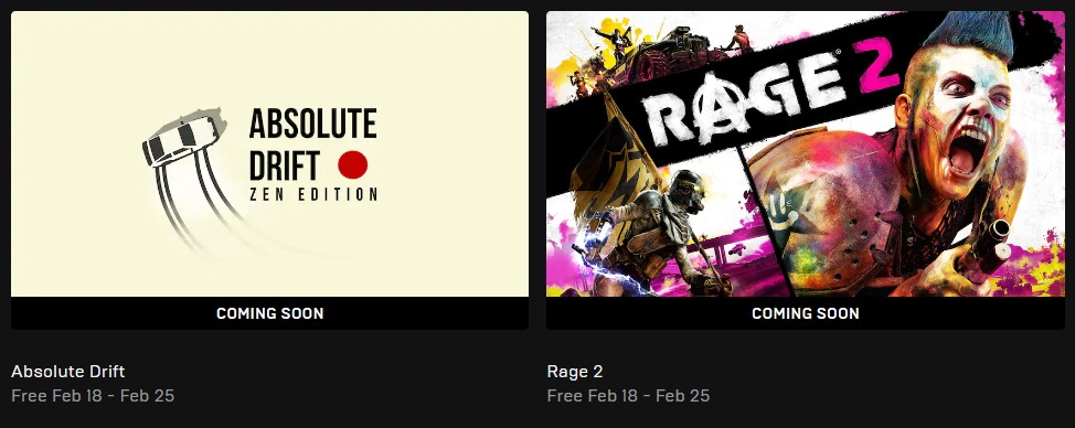 Február 18 és február 25 között a Rage 2 és az Absolute Drift ingyenes.