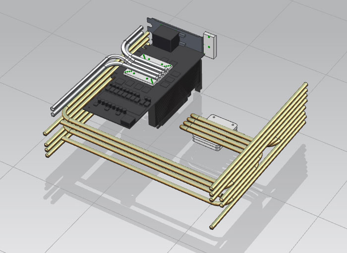 A 300 wattnyi teljesítmény elvezetéséről a gondosan megtervezett és rengeteg hőcsővel felvértezett hűtési rendszer gondoskodik. A fenti képen láthatjuk is ennek a leegyszerűsített felépítését, nem bízza a véletlenre a dolgot a gyártó az már biztos.