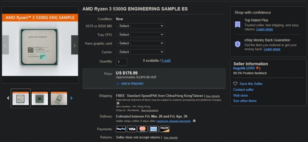 A még be sem jelentett AMD Ryzen 3 5300G már eladó az eBay-en