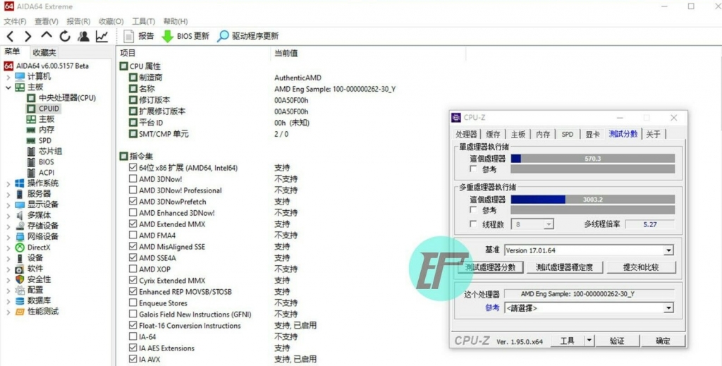 Jelenlegi állapotában az AMD Ryzen 3 5300G 570 pontot ért el egyszálú CPU-Z benchmarkban és 3003 pontot több szálon.