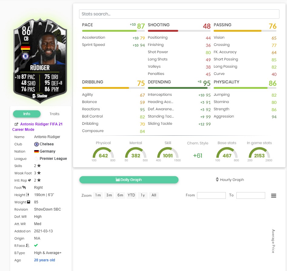 Az első dolog, amit észrevettem az Rüdiger gyorsulása volt. Mikor meglátod, hogy egy középvédőnek 80+ valamelyik Pace statja egyből rávágod, hú ez jó lehet a száguldozó csatárok mellett. Igen, ám de számít a gyorsulás is. Míg Ronaldo már rég eléri a max sebességét, Rüdiger akkor kapcsol még csak kettesbe. Hosszútávú futásba jó lesz, rövidtávon ott fogják hagyni. A lap, amúgy szerintem jó is lehetett volna, de sajnos ezzel a gyorsulással nem életképes.