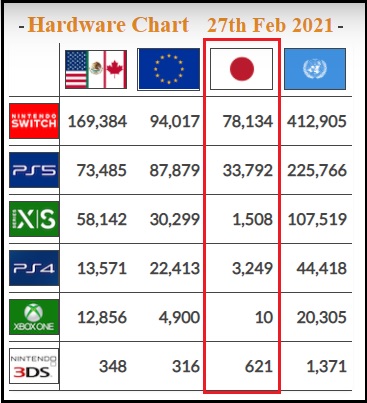 Összehasonlításképpen: ugyanezen a héten 3.249 PS4 konzolt fogyott, a japánok 33.792 PS5-öt vettek, és 78.134 Nintendo Switch konzolt talált gazdára.