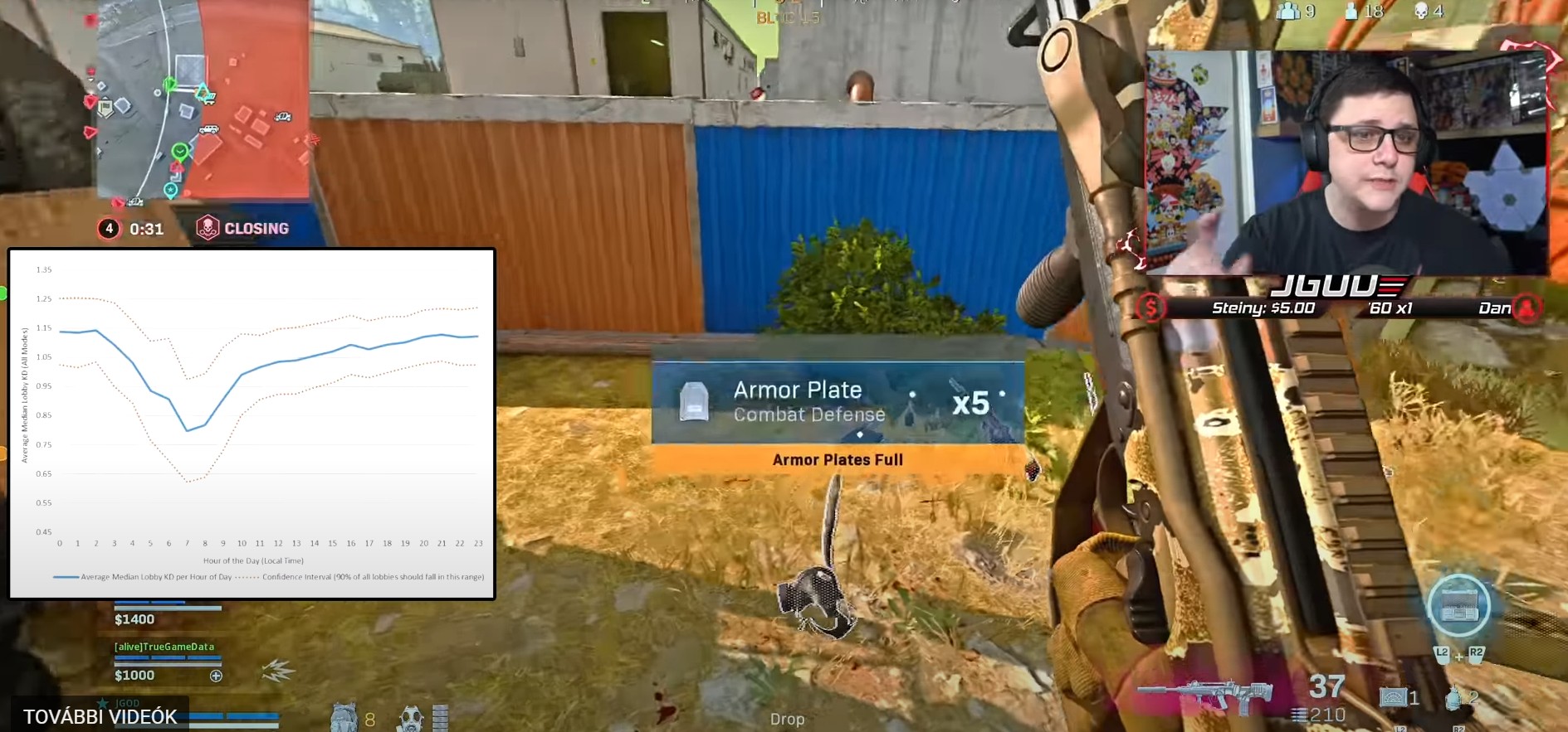 Amint arra a JGOD rámutat, ha meghaladja valaki az 1.1 K/D-t, akkor a játékosok 20 százalékába tartozik, így nagyobb eséllyel kerül be alacsonyabb szintű lobby-ba. Ez tehát azt jelenti számunkra, hogy nagyon nem mindegy az eredményesség szempontjából az sem, hogy mikor játszunk Warzone-t. Persze nagyon nehéz lehet reggelre időzíteni a játékot és nem estére, de talán érdemes lehet kipróbálni a módszert.