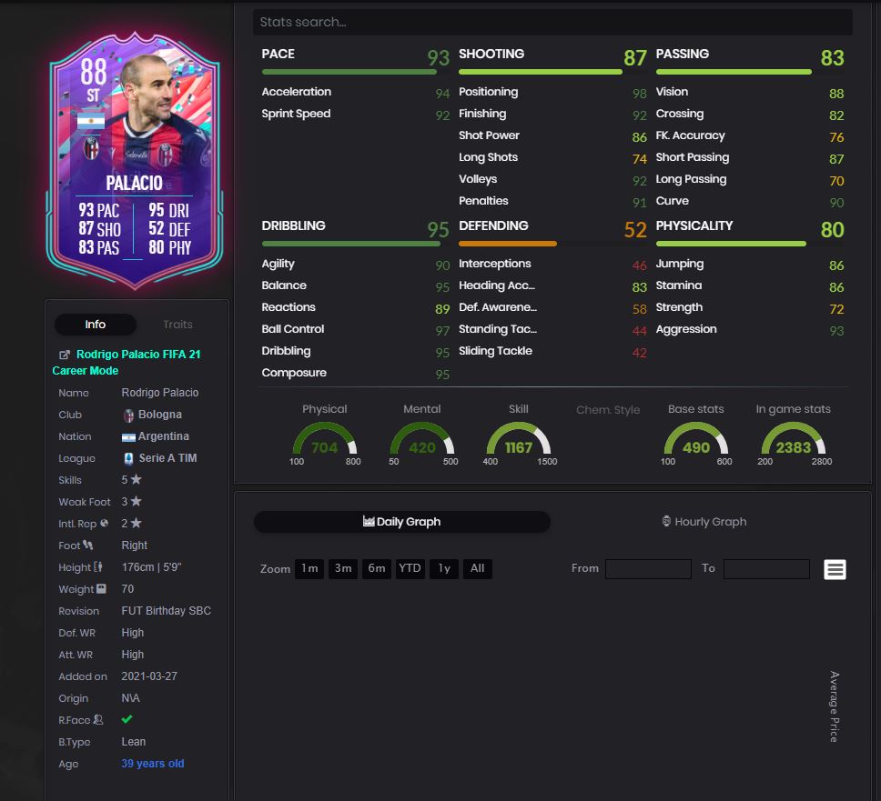 Azt tudtuk, hogy csatár jön és a legtöbben talán egy Zlatan lapot szerettek volna látni. Hát sajnos valószínűleg a balhé miatt továbbra se kaptuk meg a svéd lapját, de helyette jött egy másik csatár a Seria A-ból. Palacio kiváltásához, egy 83-as és 85-ös csapatra van szükségünk. Az utóbbiba egy TOTW lap is kell így nagyjából 210 ezer az aktuális ára PS-en.