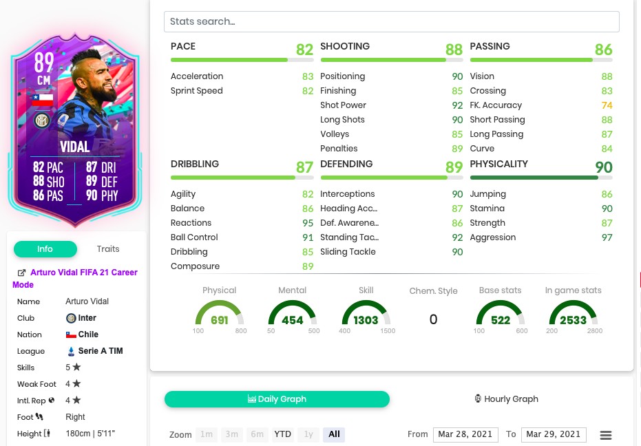 Folytatódik a FUT Birthday event SBC dömpingje, ami eddig rendkívül szimpatikus kedvező áraival, legyen szó játékosról vagy csomagról. Ebből a sorból Vidal SBC-je jócskán kilóg árazását tekintve, de olyan lappal áldották meg, ami indokolttá teheti a kiváltását. A sokat tapasztalt és rengeteg top csapatban is megfordult chilei középpályás, agresszív játékstílusával, valamint alázatos hozzáállásával pillanatok alatt szeretteti meg magát az adott klub szurkolói köreiben.