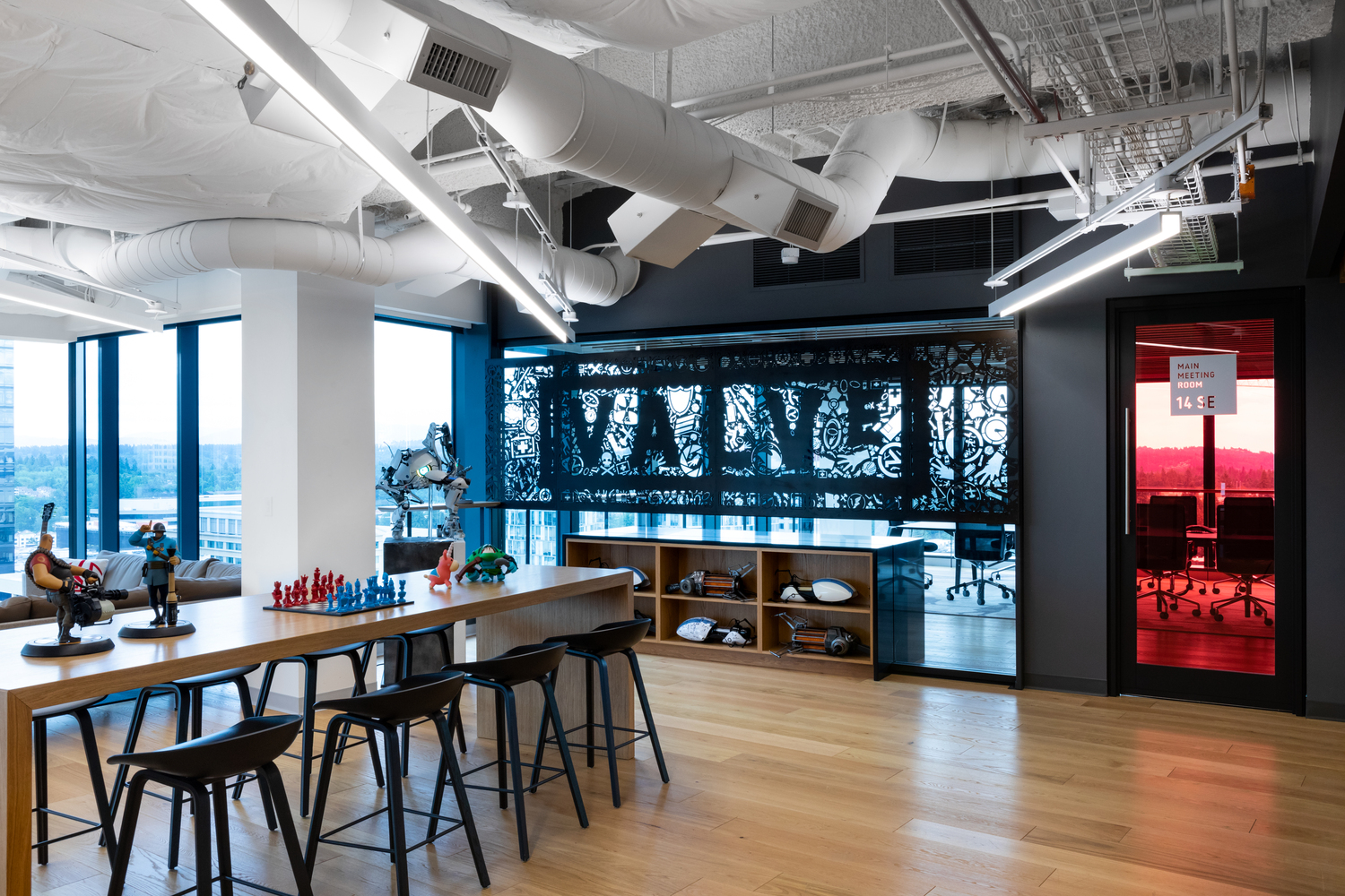Az iroda egy mondhatni hagyományos forma többemeletes irodakomplexumban található, aminek pár szintjét Newellék foglalták be maguknak. Ez pedig meg is látszik rajta, hiszen mind a workplace-ek kialakítása és elhelyezkedése, mind a dekoráció egyénileg a Valve-ra és a dolgozók igényeire lett szabva.