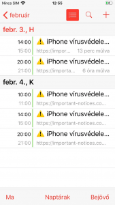 Az utóbbi napokban-hetekben egyre több közösségi felületen jelentek meg az aggódó üzenetek, hogy vírus került a felhasználók iPhone-jára, iPadjére. Állításuk alapján folyamatos naptárértesítéseket kapnak, ránézésre is ártalmas linkekkel teletűzdelve.