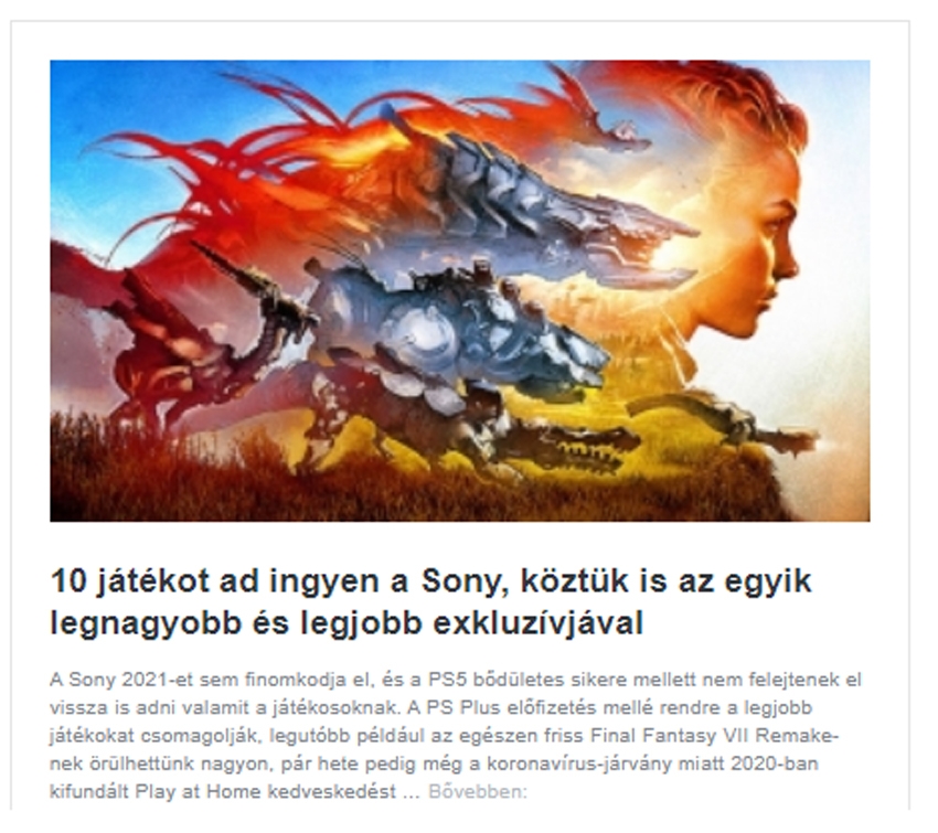 A tizedik azonban a mai napon vált elérhetővé, ez pedig nem más, mint a PS4-éra egyik legjobb, sés legnagyobb meglepetést okozó exkluzíva, a Horizon: Zero Dawn. Sőt, még csak nem is az alap verziót, hanem a minden extrával kitömött Complete Edition-t adják, amely tartalmazza a Frozen Wilds jó pár órás kiegészítőt is.