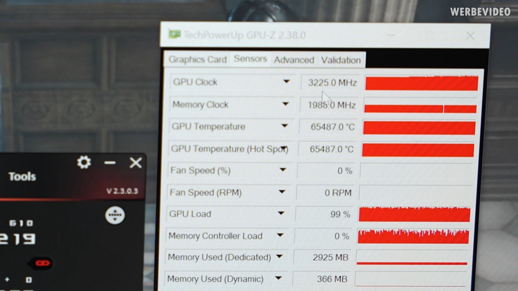 Az LN2 hűtés alkalmazásával, – amely a kártya üzemi hőmérsékletét -87 ° C-ra süllyesztette -, ‘der8auer’ elérte a 3225 MHz-es órát – Ezt igazolta a GPU-Z-, amelyet az overclockerek köreiben továbbra is a diagnosztikai eszközként használnak, videokártyák számára.