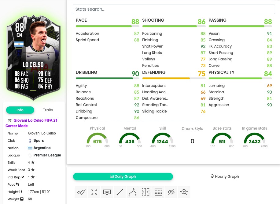 Sűrű heteken van túl a Tottenham gárdája, amely a napokban menesztette edzőjét, a portugál José Mourinhot. A másik napirendi pont Harry Kane. A csapat gólvágója ugyan rendkívül hűséges, viszont betelni látszik nála a kupa nélküliség pohara. A csapat gyakorlatilag megállás nélkül hullatja a fontosabbnál fontosabb pontokat, mintha helyezése ezt megengedné. A Mourinho-ére egyik legfőbb kárvallottja a szurkolókon kívül Lo Celso. Minden kétséget kizáróan mellőzte őt a luzitán tréner, miközben a pályán láttunk tőle csodás mutatványokat. Ultimate Team vizeken eddig az SBC-ig mindösszesen egy sima Gold lappal büszkélkedhetett, ami elég soványnak tűnik.