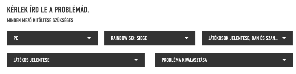 A meccsekkel ellentétben, itt sajnos nincs lehetőség már in-game reportra, ám nem jelenti azt, hogy büntetés nélkül maradhatnának ezek a játékosok. Irány a Ubisoft Support weboldalra, ahol manuálisan kell jelentenünk őket, a fenti képen látható módon. Érdemes kimentenünk a gyanús részleteket egy videóba, esetleg pár screenshot társaságában és ezeket csatolva már küldhetjük is a hibajegyet.
