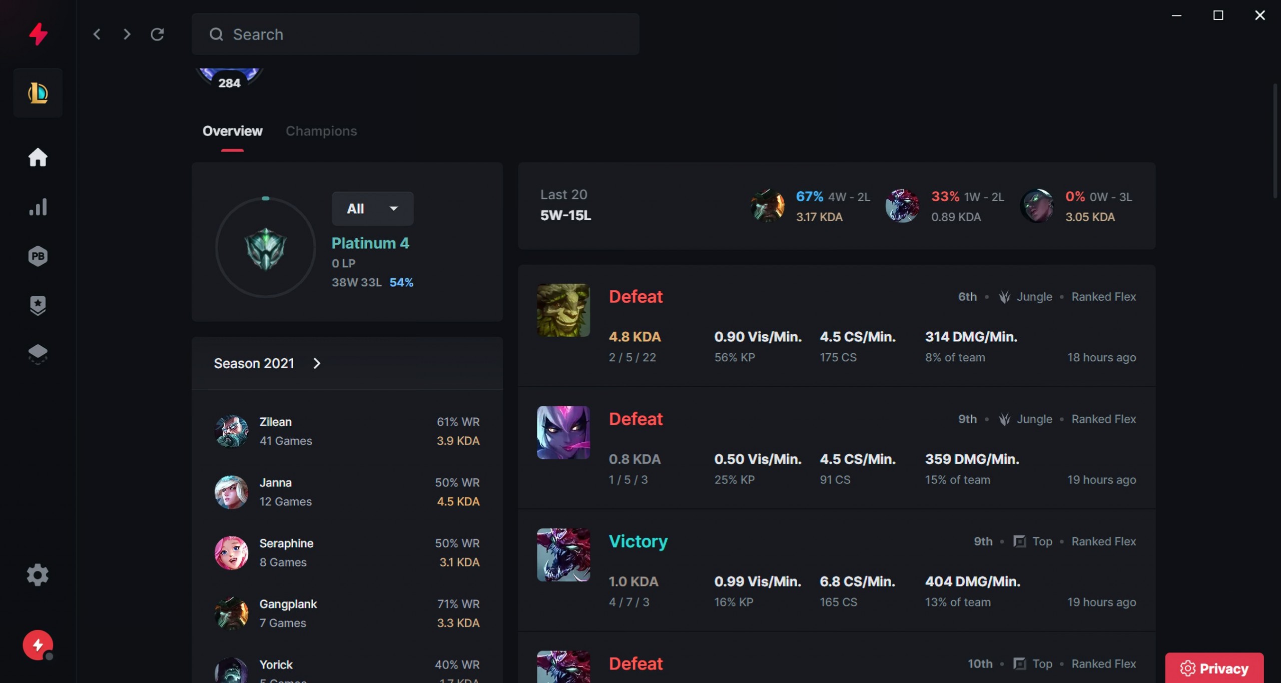 Miután letöltöd, be tudsz jelentkezni a támogatott játékokba, ami jelen pillanatban a League of Legends, a Valorant, a Teamfight Tatics, a Legends of Runeterra, de hamarosan a Fortnite is a listára kerül. Fontos tudni, hogy a Blitz nem támogatja a magyar nyelvet jelenleg. Cikkünkben most a LoL-ra összpontosítunk, s megnézzük, miben segíthet nekünk a Blitz. Bejelentkezés után a program felismeri a profilodat és rögtön el is lát statisztikákkal.